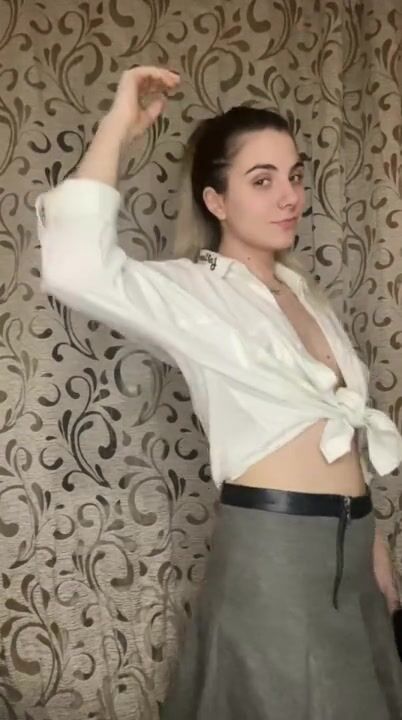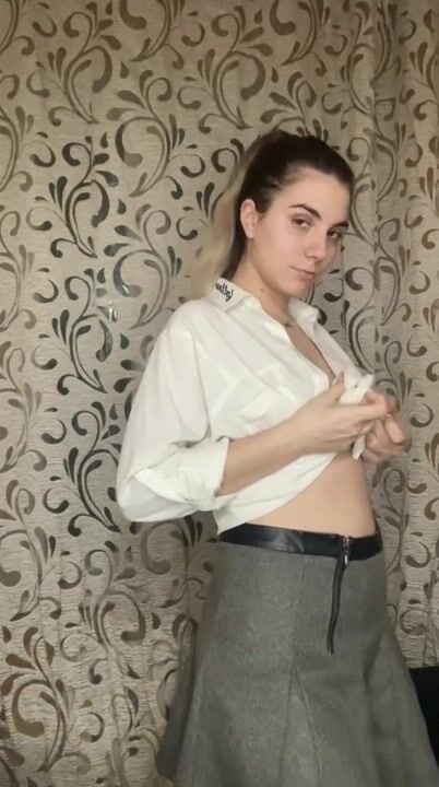 A schoolgirl without panties shows her hot forms.