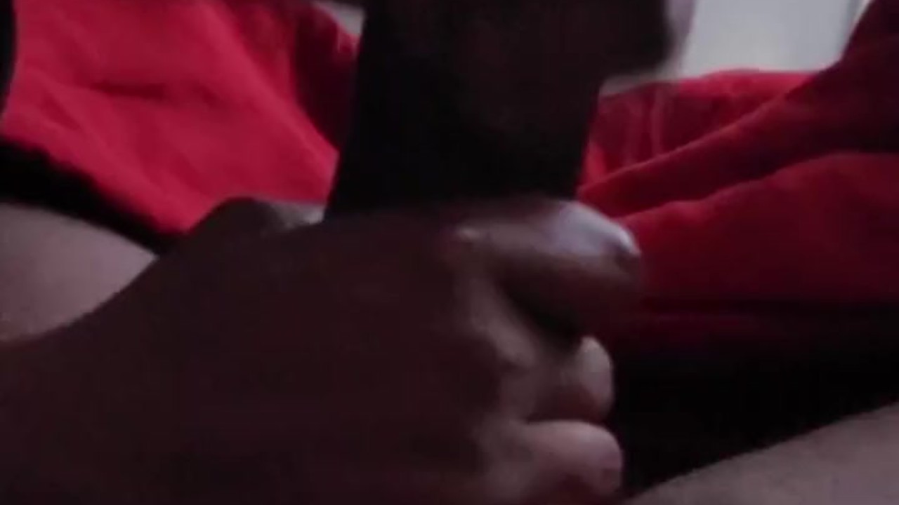 Black step sis gives step bro edging handjob with oily feet out