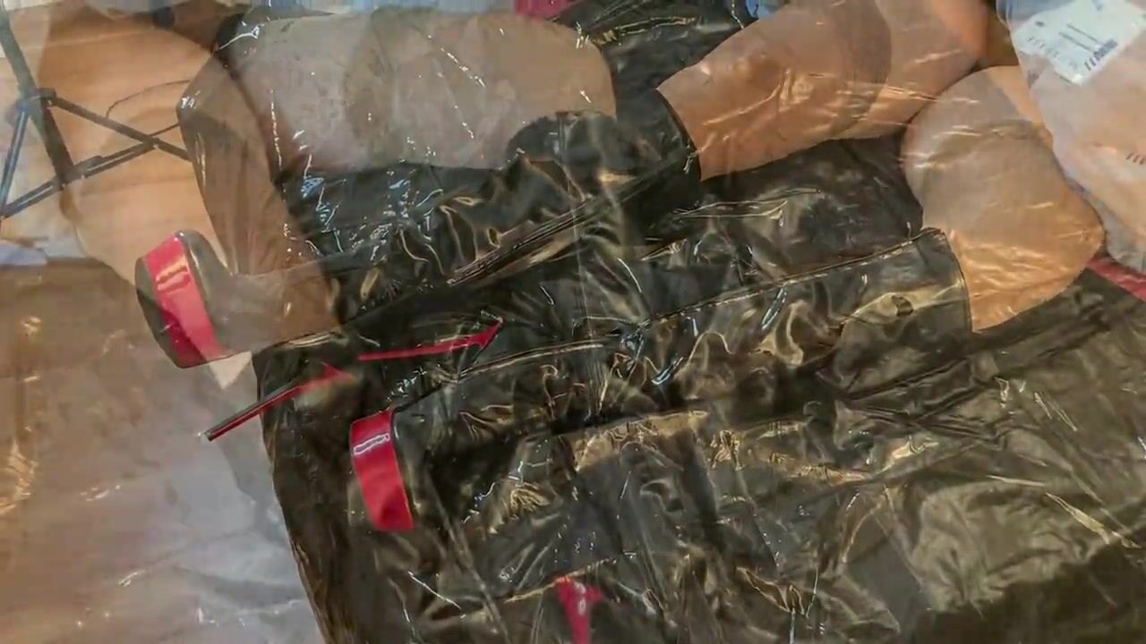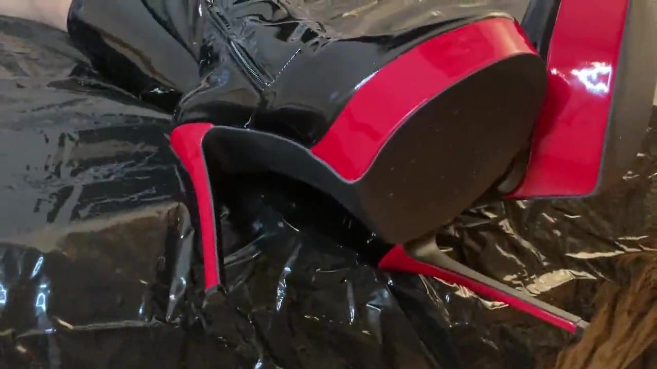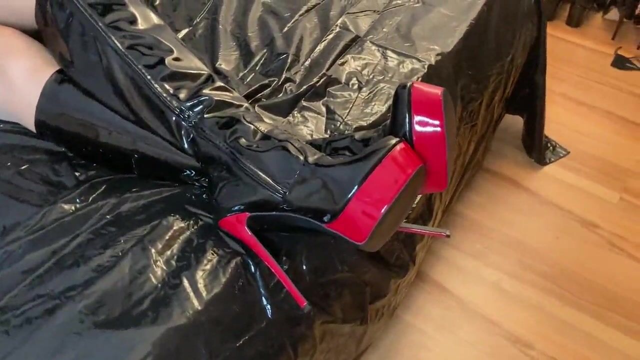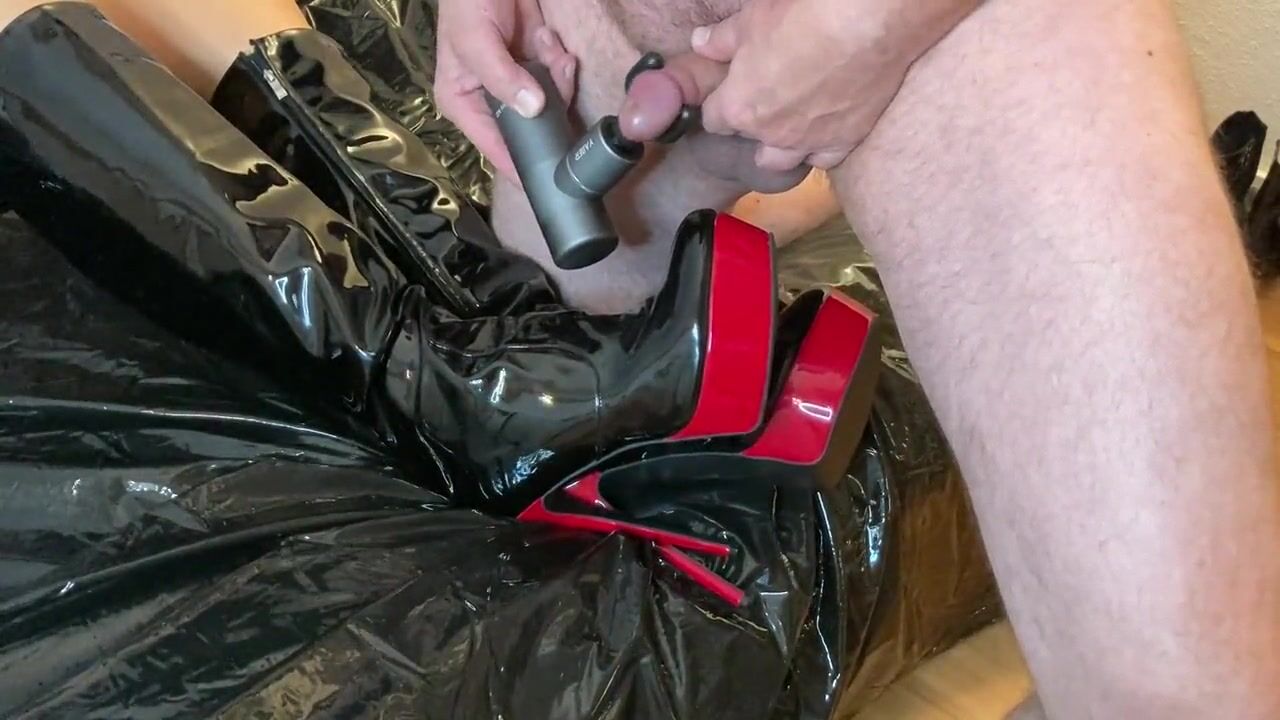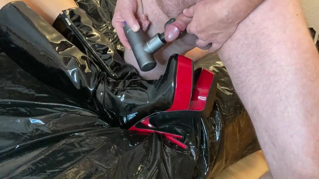 Cum on Black Patent Leather Boots