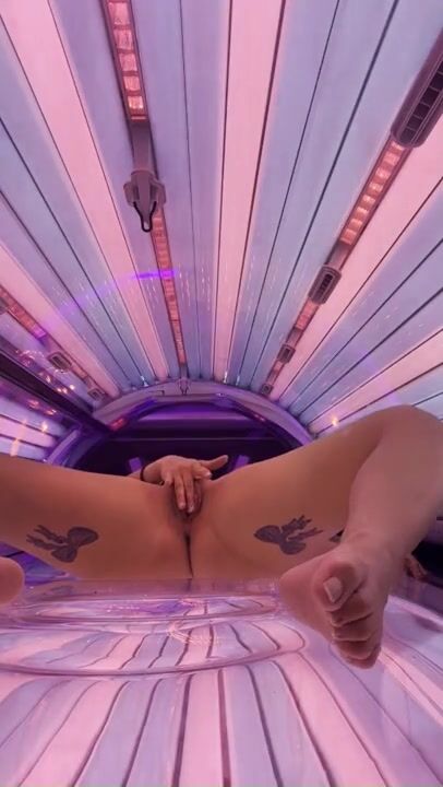 Horny brunette masturbates in the solarium????