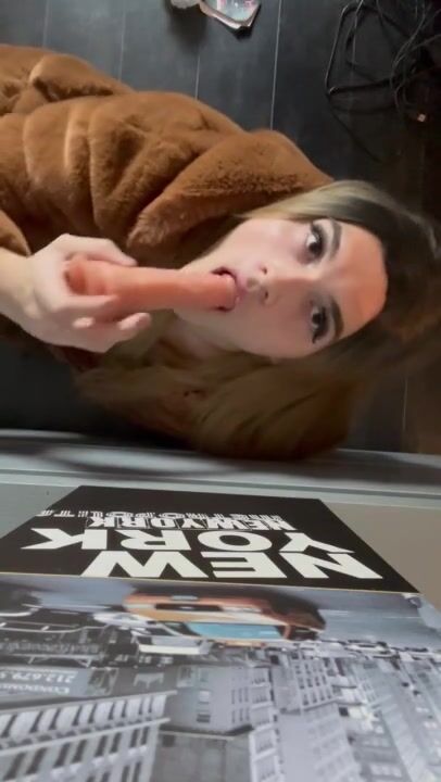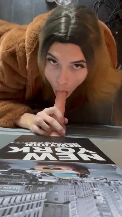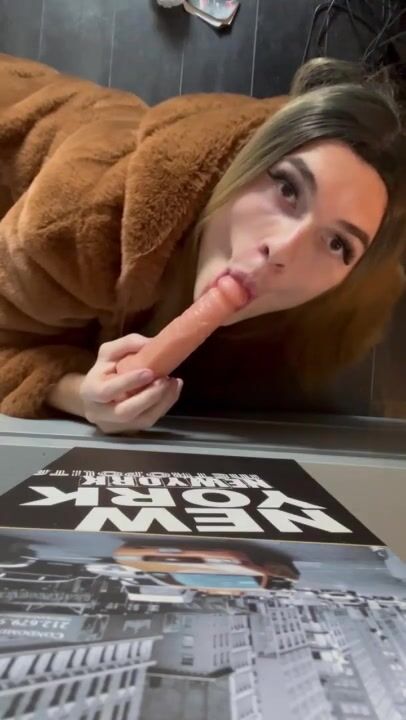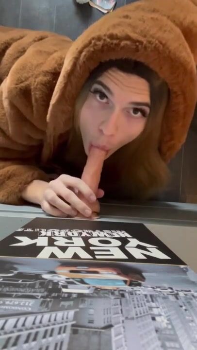 Manon_psqer travesti française suce un gode dans un manteau de fourrure