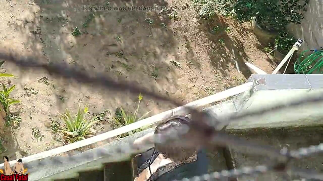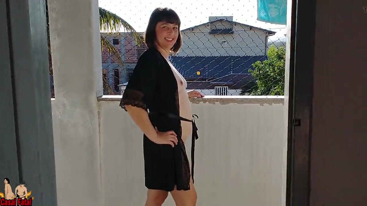 My wife teasing me flashing her body on balcony and handjob me