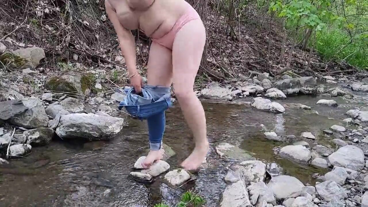 Sophie Gets Naked and Pees in the Stream at the Park, Almost Gets Caught!