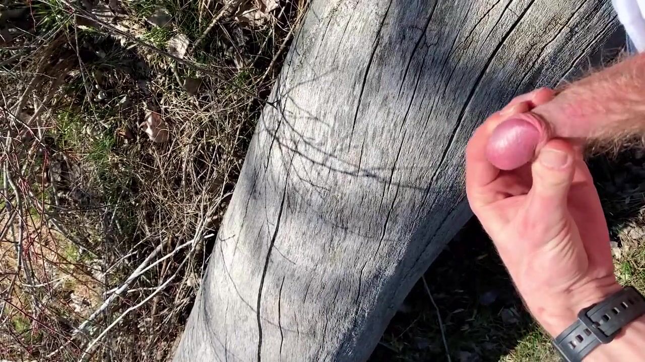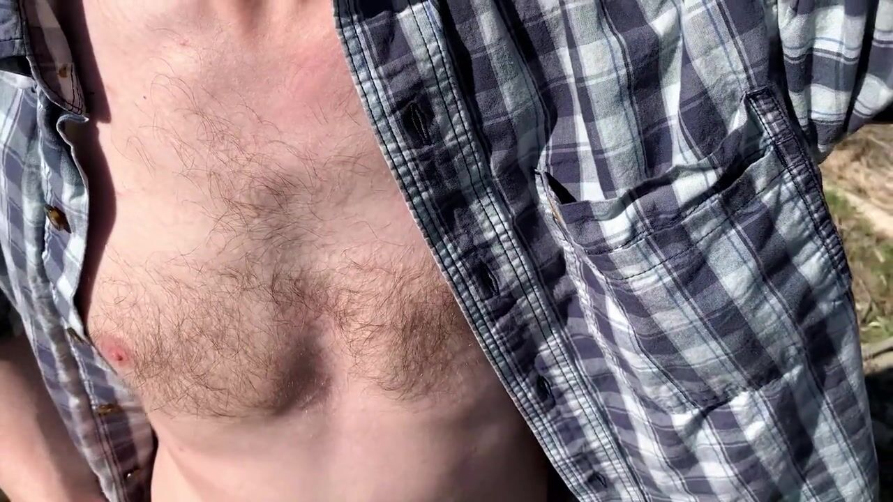 Touching myself in a public forest. Nasty slutty hunk shows himself almost gets caught by hiker